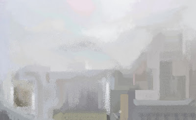 This would have been a rather pleasant painting of moist greenery in a rainstorm. Except for the damned rodent. This is what remains. I'm beginning to think that perhaps I should start using real paints again. Despite the space limitations here.